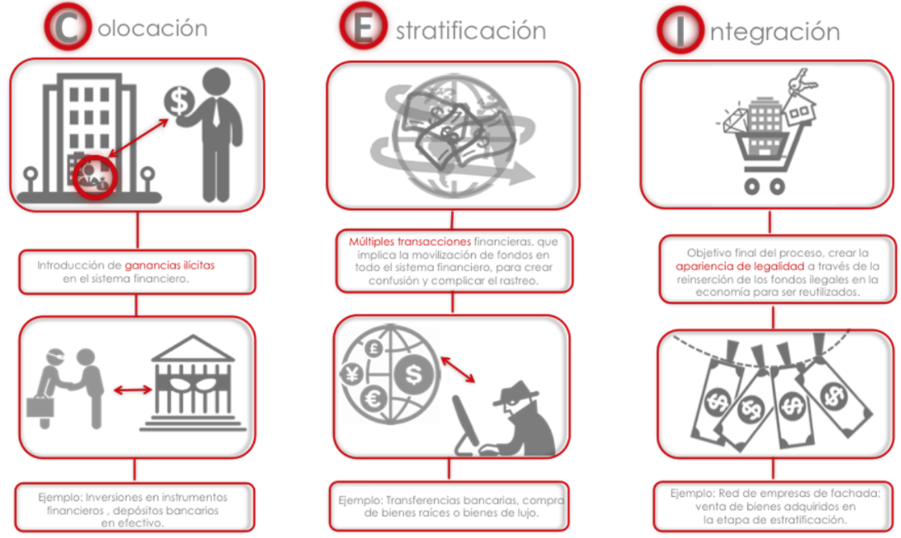 El lavado de dinero es el proceso a través del cual es encubierto el origen de los fondos generados mediante el ejercicio de algunas actividades ilegales (siendo las más comunes, tráfico de drogas o estupefacientes, contrabando de armas, corrupción, fraude, trata de personas, prostitución, extorsión, piratería, evasión fiscal y terrorismo). El objetivo de la operación, que generalmente se realiza en varios niveles, consiste en hacer que los fondos o activos obtenidos a través de actividades ilícitas aparezcan como el fruto de actividades legítimas y circulen sin problema en el sistema financiero.ETAPAS LAVADO DE DINERO